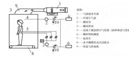 三,工作原理:氣溶膠發(fā)生器生成標(biāo)準(zhǔn)的NaCl顆粒氣溶膠,通入測試室保持相對穩(wěn)定狀態(tài)。被測對象身穿被測防護服在測試室內(nèi)按預(yù)先確定的方案進行試驗動作。由顆粒物檢測器在固定的取樣點測量被測防護服內(nèi)部NaCl顆粒氣溶膠濃度,由以下指標(biāo),評價防護服對顆粒物的整體防護性能。