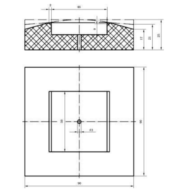 熱量計(jì)位于由邊長(zhǎng) 90mm且標(biāo)稱(chēng)厚度為25mm的無(wú)石棉阻燃隔熱板組成的安裝臺(tái)上,阻燃隔熱板的熱特性應(yīng)符合以下規(guī)格: