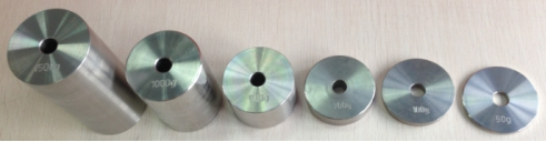 在壓力板上方的砝碼軸上安裝對(duì)應(yīng)重量的砝碼(儀器配置有1500,1000,500,250,100,50g標(biāo)準(zhǔn)砝碼各一個(gè)),使其對(duì)試樣摩擦施加一定的壓力。根據(jù)單位面積試樣重量的大小來(lái)選擇所需要施加的壓力值,