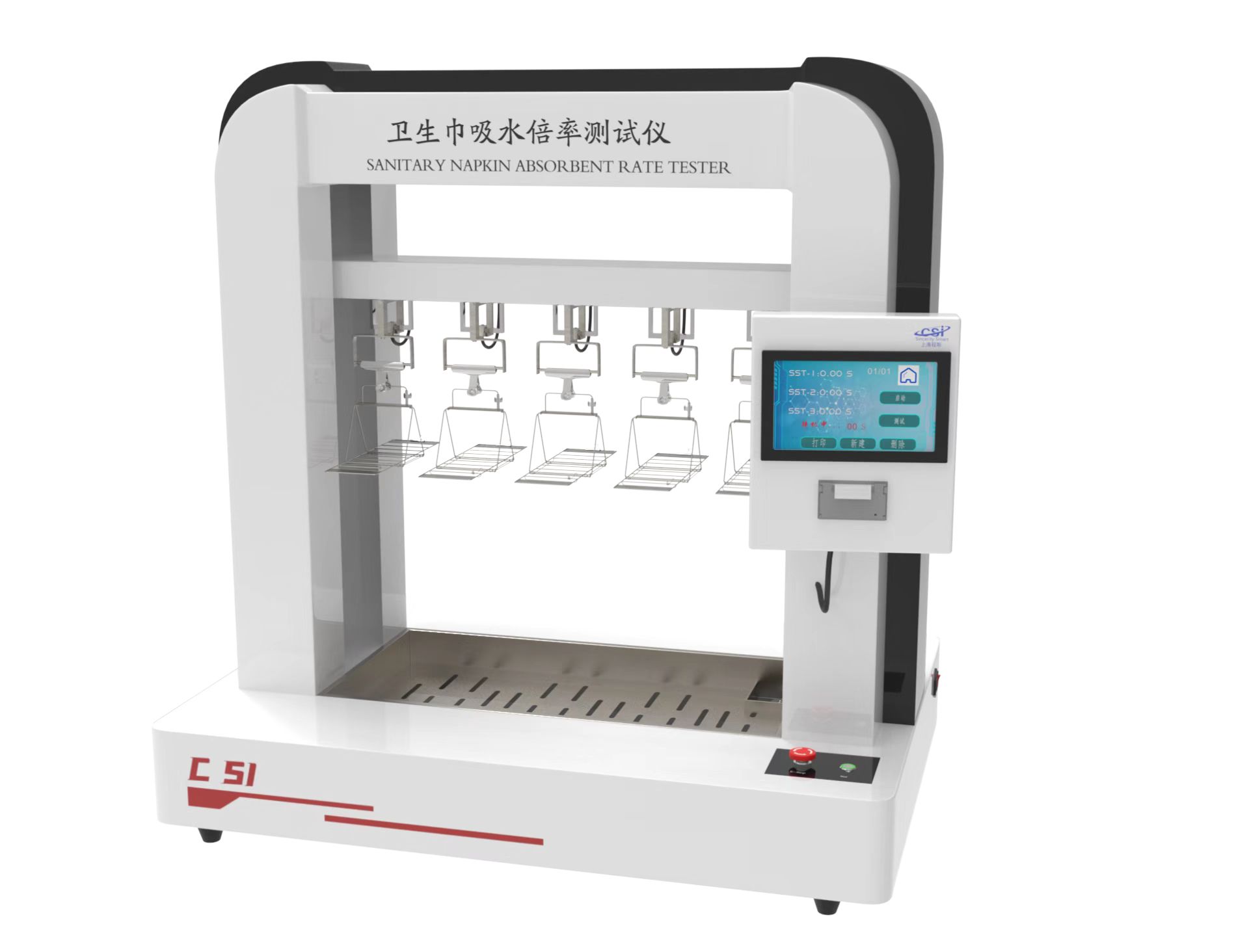 這款儀器主要檢測(cè)的項(xiàng)目是衛(wèi)生巾和紙尿褲在生產(chǎn)過(guò)程的吸水的能力即吸水倍率,適用于各種衛(wèi)生巾、紙尿褲、護(hù)墊、無(wú)紡布等吸水材料的吸水倍率全自動(dòng)測(cè)試。
