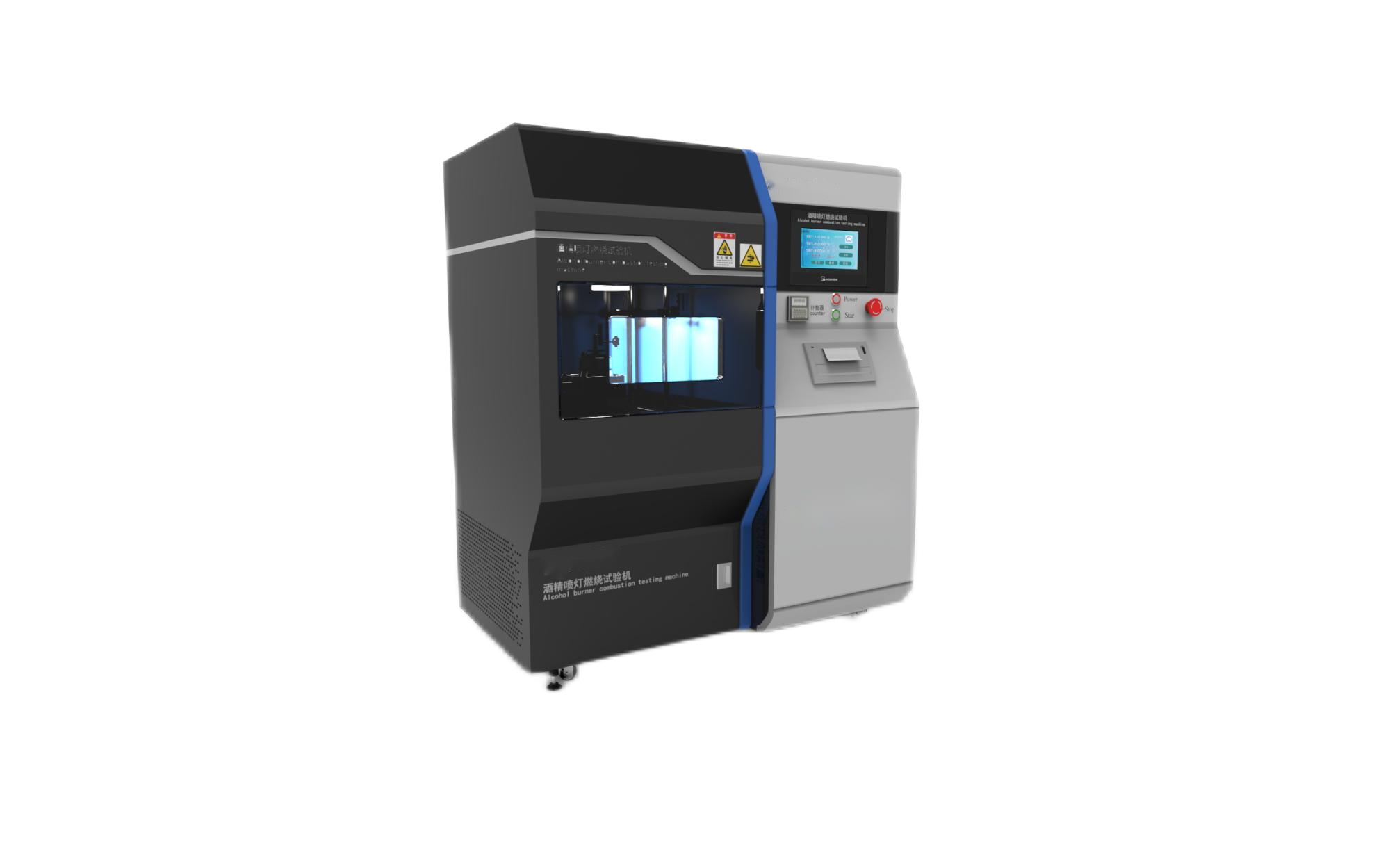 本裝置由酒精噴燈燃燒器、燃燒器底座、試樣架、燃料瓶、燃燒試驗(yàn)箱、排煙系統(tǒng)六部分組成。
