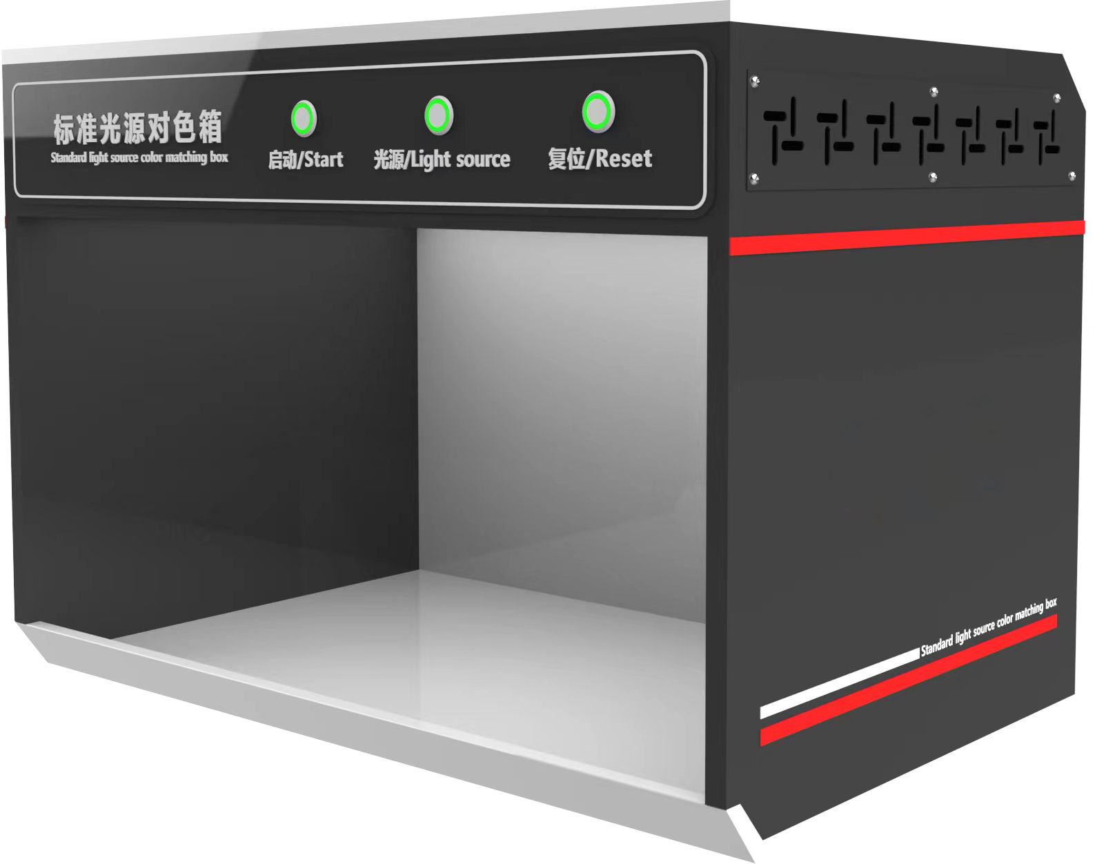 該設(shè)備是對色、配色之特殊光源箱,使試樣、生產(chǎn)、質(zhì)檢、驗(yàn)收在相同的標(biāo)準(zhǔn)光源下進(jìn)行,準(zhǔn)確校對貨品