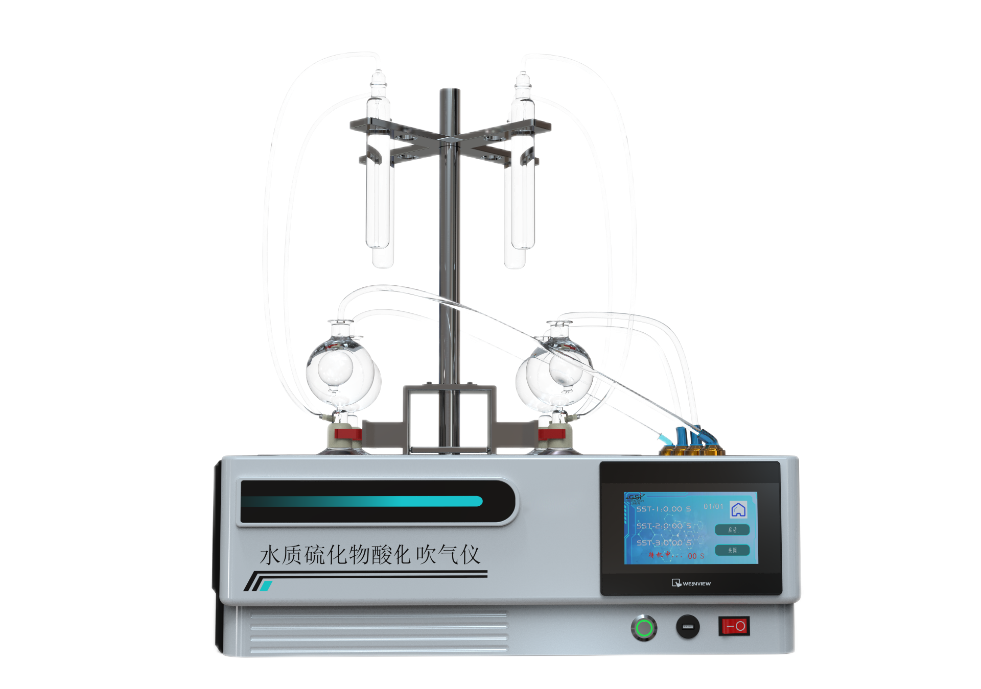 水樣中的硫化物經酸化,生成的硫化氫隨載氣(氮氣) 進入吸收瓶/吸收顯色管中被吸收溶液 (乙酸鋅-乙酸鈉溶液或2%氫氧化鈉溶液)吸收選擇相應的分析方法對吸收瓶/吸收顯色管中吸收的硫離子進行分析測定。水質硫化物酸化吹氣儀根據(jù)2022年最新國標水質硫化物的測定-亞甲基藍分光光度法(典量法)標準開發(fā)生產的。水質硫化物測定的樣品前處理需要。