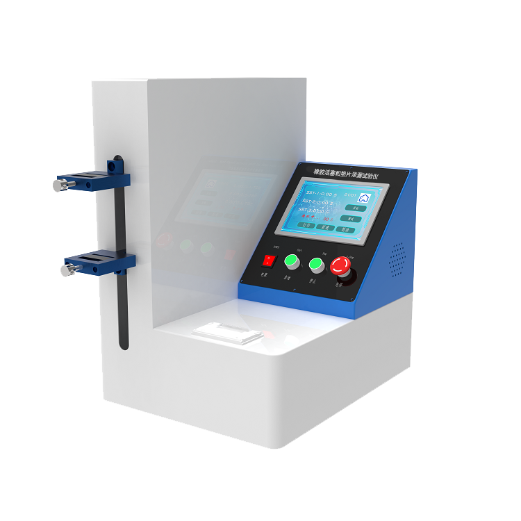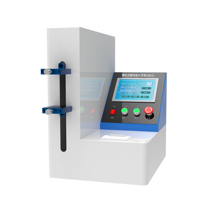 試驗方法:取 10個經(jīng)硅油處理內(nèi)表面的筆式往射器套,注水,裝上試驗用塞及墊片,加上鋁帽,封口。將1個筆式注射器套簡安裝于筆式注射器套簡夾持器(有平面和活塞接觸),向活塞施加 60 N±3N 的作用力,保持 1分鐘,試驗結(jié)束后,檢查活塞及墊片的泄漏情況,其余筆式往射器套筒也同法操作,活塞及墊片部位不得有液體泄漏。