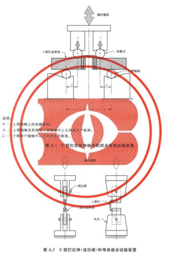 施加載荷對金屬U型釘進(jìn)行試驗(yàn),直至樣本失效或達(dá)到預(yù)定循環(huán)次數(shù),可以選擇以下兩種方式之一進(jìn)行試驗(yàn):一種是單純的平面內(nèi)彎曲:一種是拉伸(或壓縮)與平面內(nèi)彎曲相結(jié)合??梢栽诔丨h(huán)境條件下或者在水溶液或生理溶液中(室溫或37℃)采用任一方法進(jìn)行試驗(yàn)。