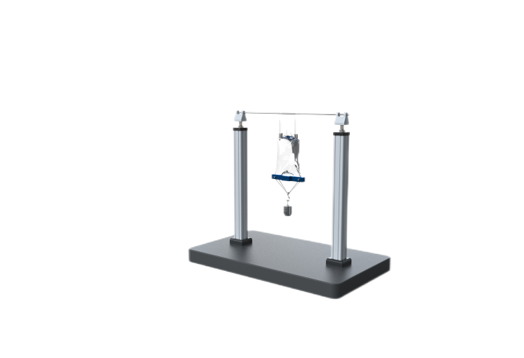 將兩條帶子安裝到固定支撐上,使安裝點在同一水平高度上,同時與被測貯尿袋問
