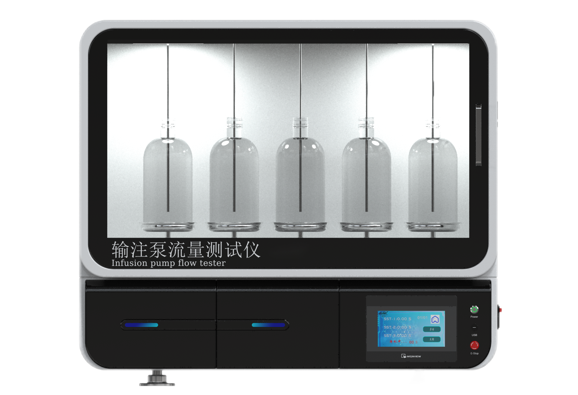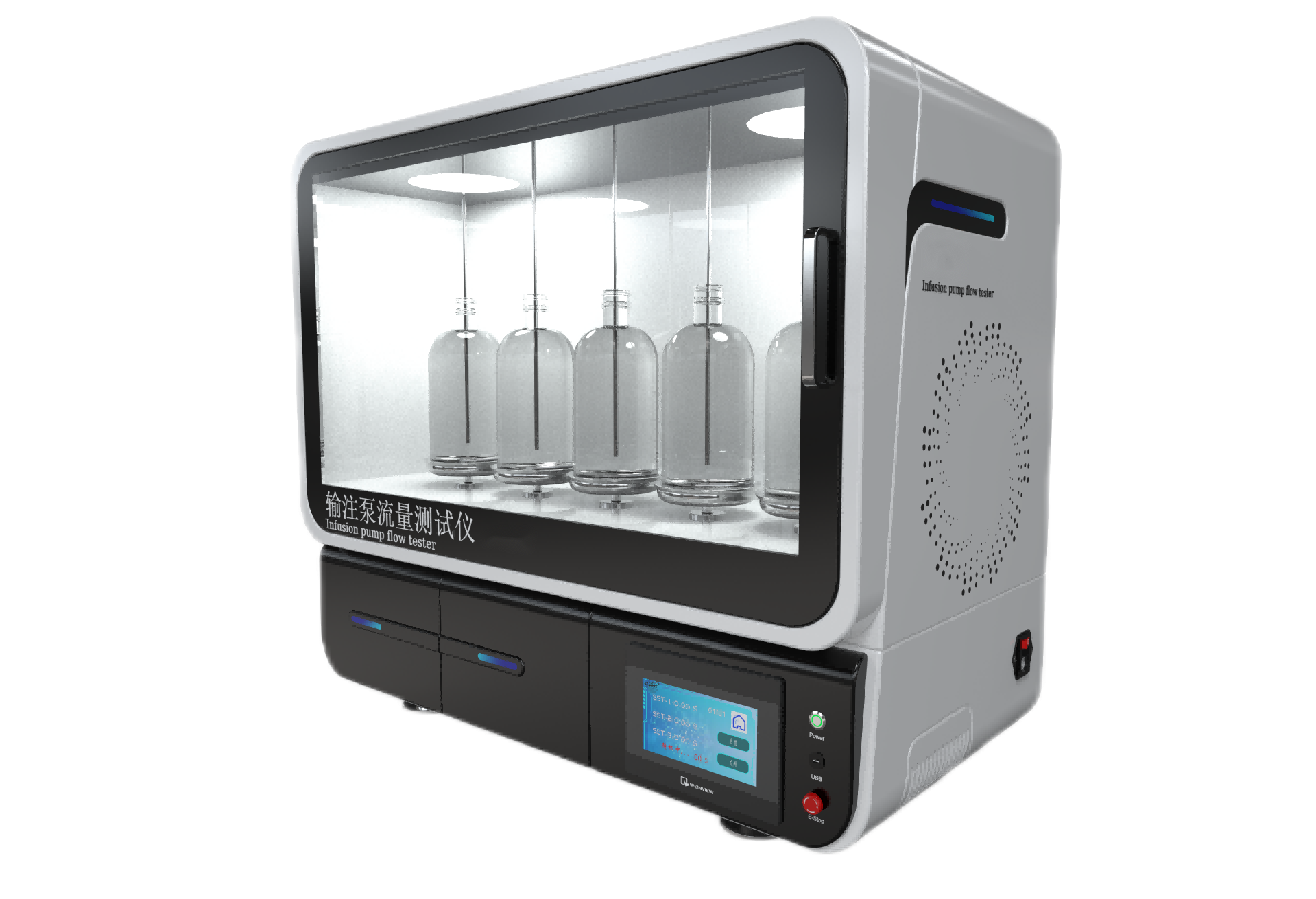 輸注泵流量測(cè)試儀 多通道測(cè)試是根據(jù)NFS93-025,YY0451-2003《一次性使用輸注泵》和YY0451-2010《一次性使用便攜式輸注泵》中的有關(guān)條款而設(shè)計(jì)制造的。(一拖多個(gè)輸注泵檢測(cè)或根據(jù)客戶(hù)需要增加或減少)用于分別測(cè)量輸注泵平均流量、瞬時(shí)流量,并顯示輸注泵流量與時(shí)間的曲線(xiàn)圖。