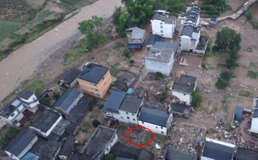項(xiàng)先生家的房子位于河道折回處,紅圈為其被沖走的大概位置。